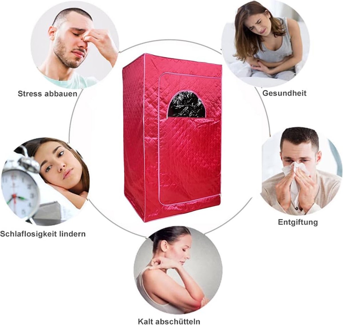 - Compact en draagbaar formaat: Met afmetingen van slechts 100 x 80 x 170 cm past deze sauna gemakkelijk in elke ruimte en is hij eenvoudig op te zetten en af te breken.