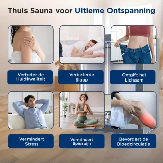 Of je wilt ontspannen na het werk, herstellen na het sporten of je huid een verfrissende boost wilt geven: deze mobiele sauna transformeert elke kamer in een rustgevende spa-oase. Eenvoudig in gebruik, veilig in werking en praktisch op te bergen — de perfecte investering in jouw welzijn.